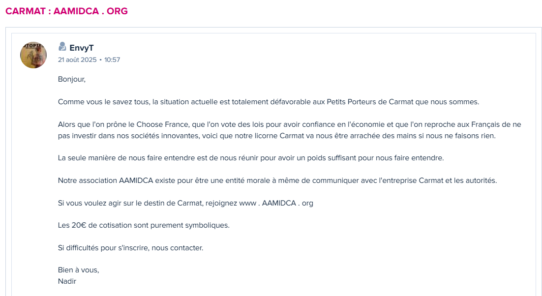 Il ne reste plus aux petits actionnaires qu'à rejoindre l'Aamidca !