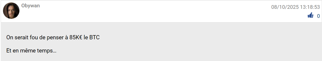 Ça me fait plaisir : un bitcoin à 107000$ avec un euro à 1,16€/$ on a un prix du bitcoin à 92 241€ 😅