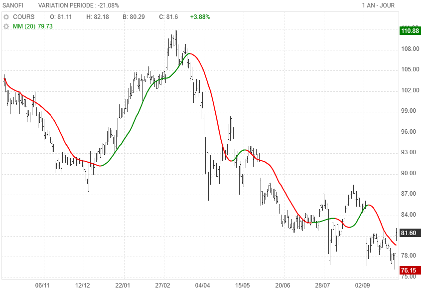 Un nouvel indicateur fait son apparition dans la longue liste de ceux disponibles sur les graphiques. Cette fois-ci il s'agit d'une moyenne mobile dont vous choisissez le type (classique, pondérée, Hull, exponentielle, etc.) et pour laquelle les phases haussières et baissières peuvent être stylisées avec 2 couleurs différentes. C'est donc surtout un effet visuel.