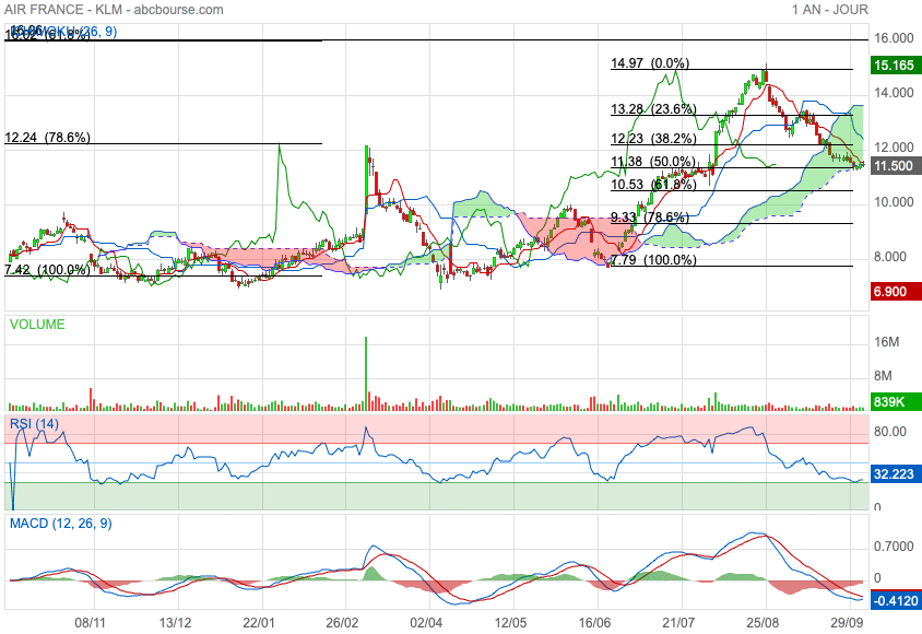 Le retracement par rapport à la dernière hausse du titre semble avoir été de 50% ( fibonacci ) et c'est peut être avec ce niveau et des indicateurs à la limite de la survente qu'on pourrait assister à un retour vers les plus hauts avec les résultats du troisième trimestre 2025.