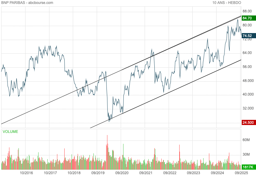 bnp Paribas : on avait approché la résistance et le support serait au niveau des 60 euros. A suivre ...