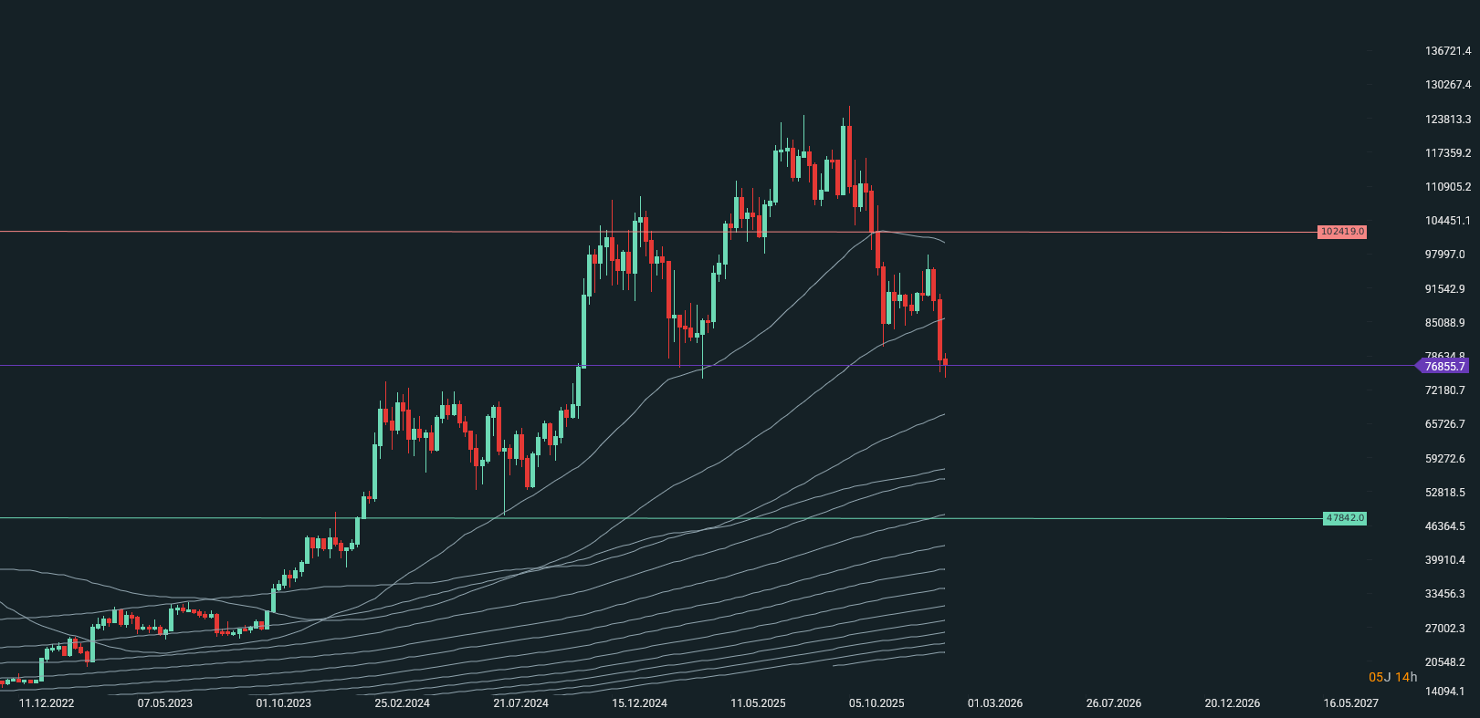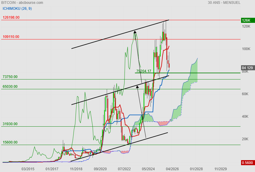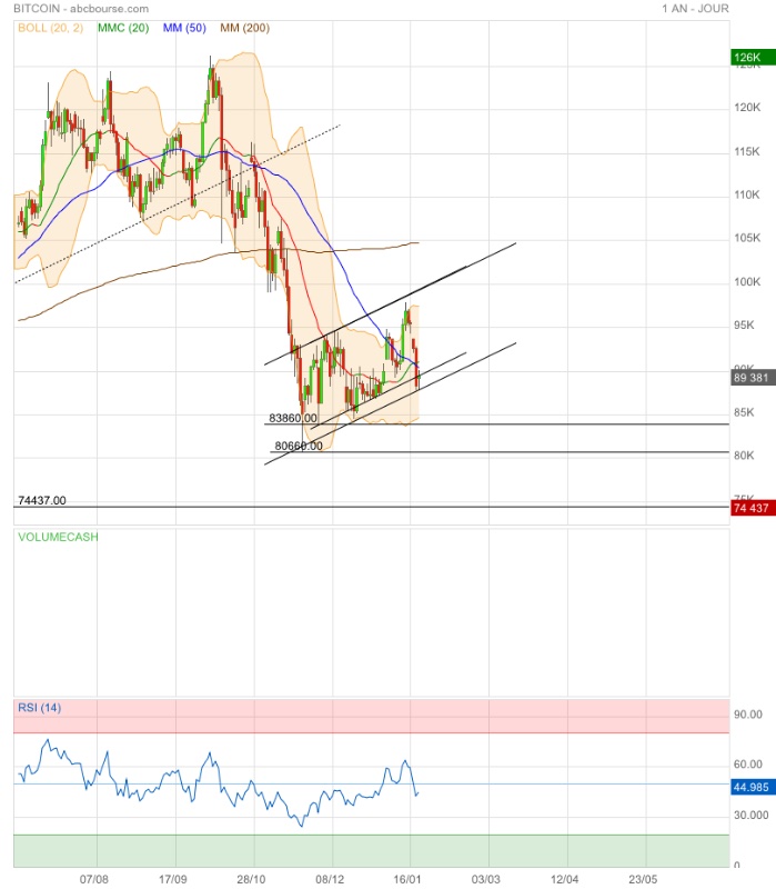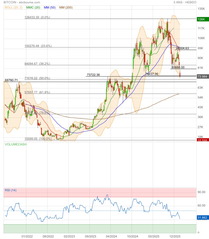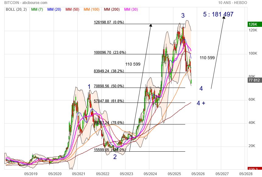 Au vu de la tendance, les prochaines étapes pourraient être 68.800 puis 58.000.