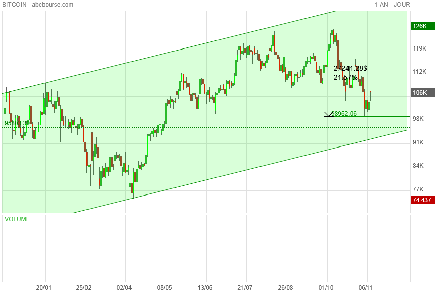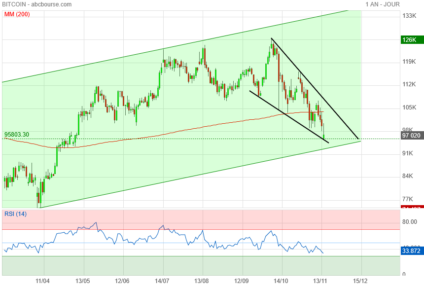 Ce que j'ai écrit le 14 novembre est toujours d'actualité : une consolidation ( à la hauteur du Bitcoin ) dans un canal ascendant.