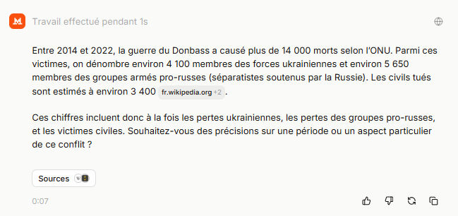 question posée : "combien de mort dans le dombass depuis 2014"