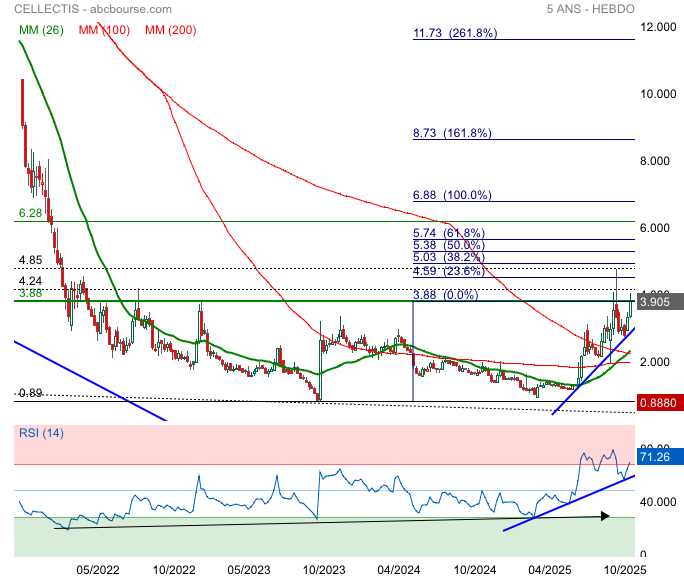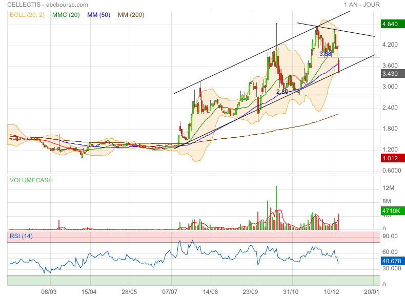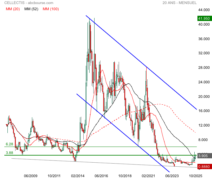 Cellectis évolue dans grand tunnel baissier à LT Mensuel