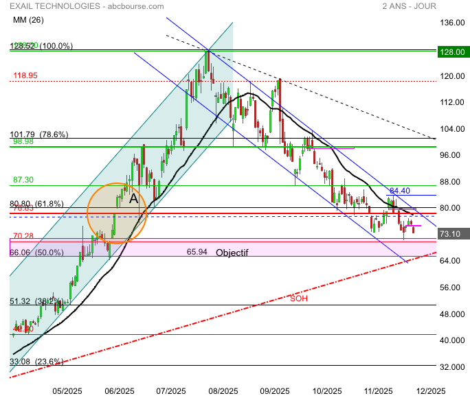 Elispse (A) qui coïncide avec finobacci 61.8% (80.80)