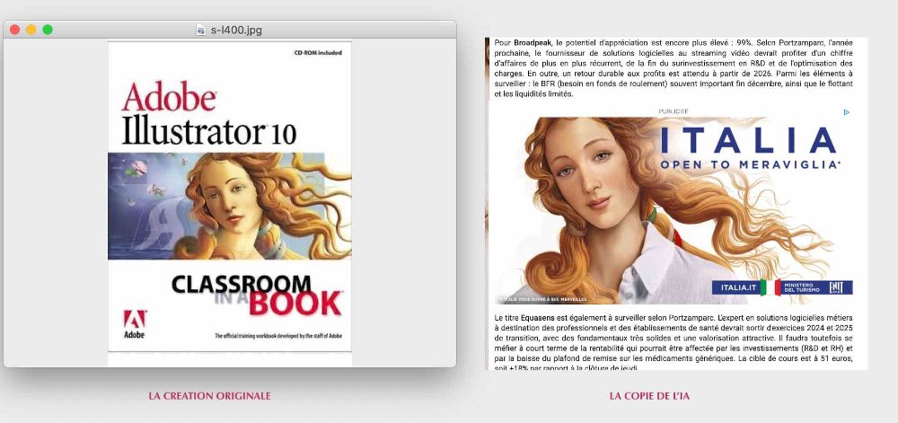 Comme on va le voir avec cette image de publicité diffusée sur le site ABCbourse par les encarts publicitaires, on pille sans vergogne la création artistique de produits et d'images de marques, et ici pour vanter l'Italie au mépris de règles de la propriété intectuelle en vigueur ( Voir site de l'OMPI)