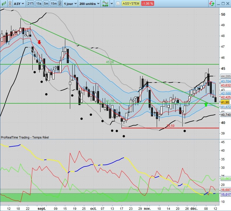 Surveiller l'éventuelle réaction sur le support à 41,78 et la ROB vers 41,50.