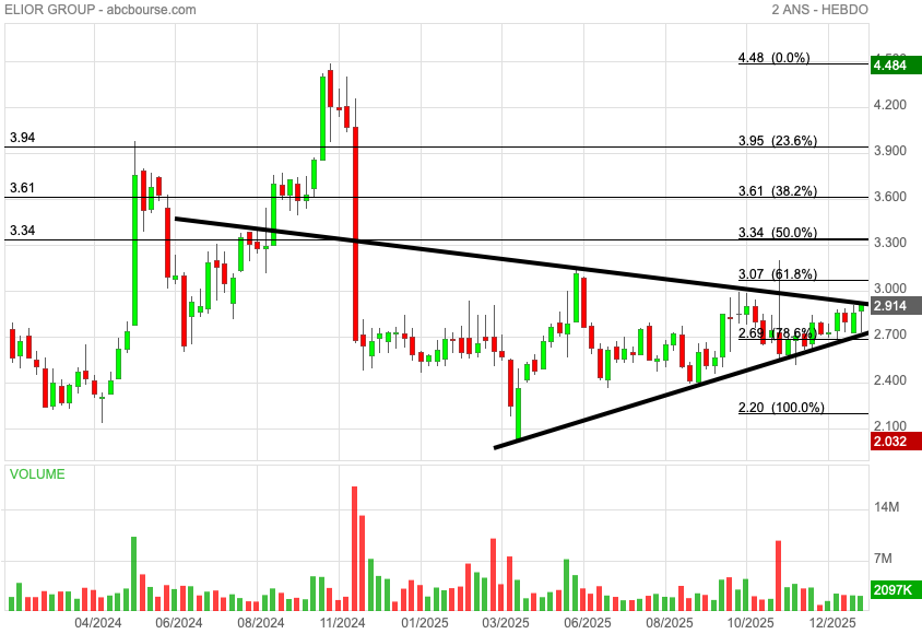 En date du 03/02/2026 il y a 3 fonds d'investissements en vente à découvert sur Elior Group. Cela représente 5 061 326 actions pour 14,35 millions d'euros, soit 2,00% du capital du groupe.