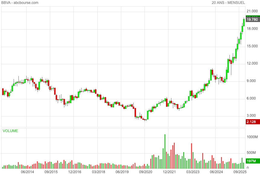 (Zonebourse.com) - BBVA a annoncé vendredi qu'il prévoyait de lancer un programme de rachats d'actions de près de 4 milliards d'euros, le plus important de son histoire, une décision qui était largement attendue par le marché suite à l'échec de sa tentative qui visait à mettre la main sur son concurrent Banco Sabadell.