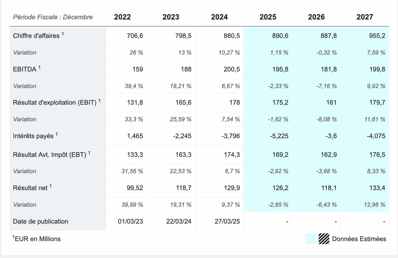 « Le milliard d'euros [de revenus] n'est pas si loin », estime Philippe Santi. En signe de confiance, le groupe va distribuer 70 % de son bénéfice 2025, pour maintenir le dividende à 1,05 €, et effectuera en juin sa traditionnelle attribution gratuite d'actions.