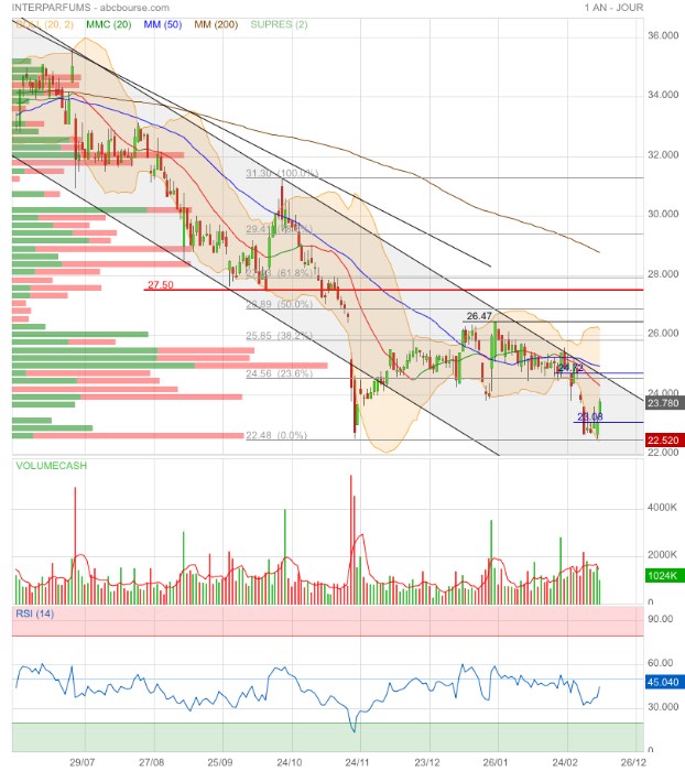 Double bottom 22,48€. On peut espérer 24,72€ (gap) sans que la tendance (baissière) change 🤔