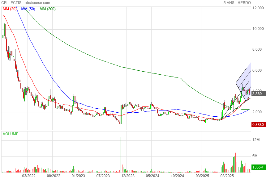 La moyenne mobile 30 semaines (SMA 30*) : Elle sert de repère pour la tendance de fond. Une action au-dessus d’une SMA 30 haussière est en phase 2, en dessous d’une SMA 30 baissière, elle est en phase 4.