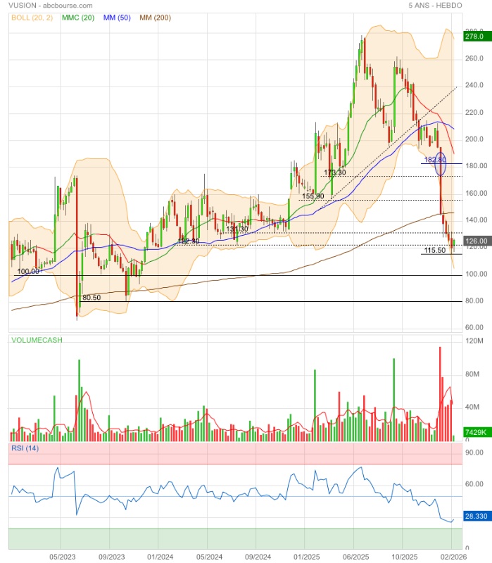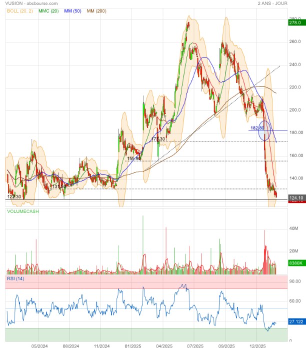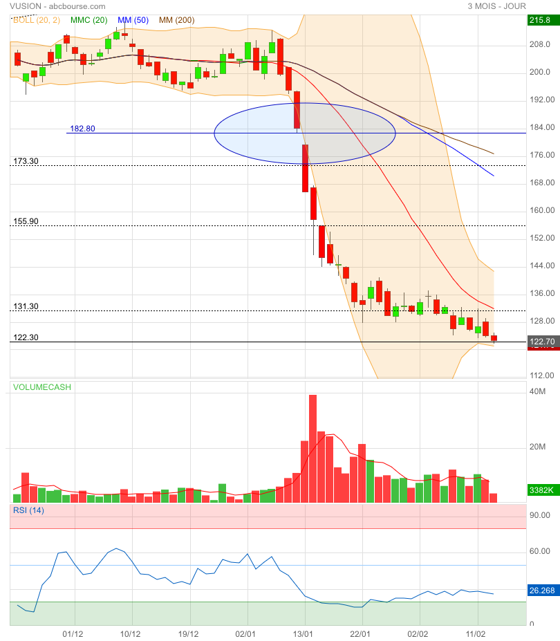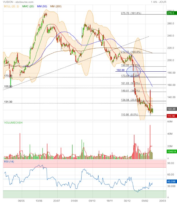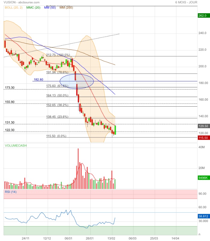 Joli marubozu dans de beaux volumes qui vient lécher l’ancien support (devenu petite résistance) 131,30€. Tous les espoirs de changement de tendance sont permis 🙂