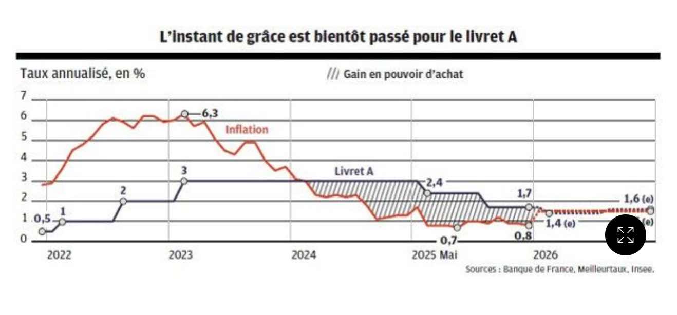 Compte tenu de la faiblesse actuelle de l'inflation et du statu quo attendu sur les taux directeurs de la Banque centrale européenne dans les prochains mois, il n'y aura probablement guère de changement par la suite, lors de la révision suivante applicable le 1er août 2026 si bien qu'il faut s'attendre à une faible rémunération du Livret A et du LDDS autour de 1,5% sur l'ensemble de l'année 2026. Le taux de rémunération moyen du Livret A et du LDDS était déjà descendu à environ 2,16% en 2025 après 3% en 2024.