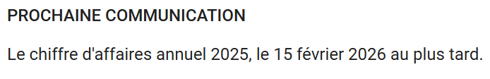 Le chiffre d'affaires annuel 2025, le 15 février 2026 au plus tard.