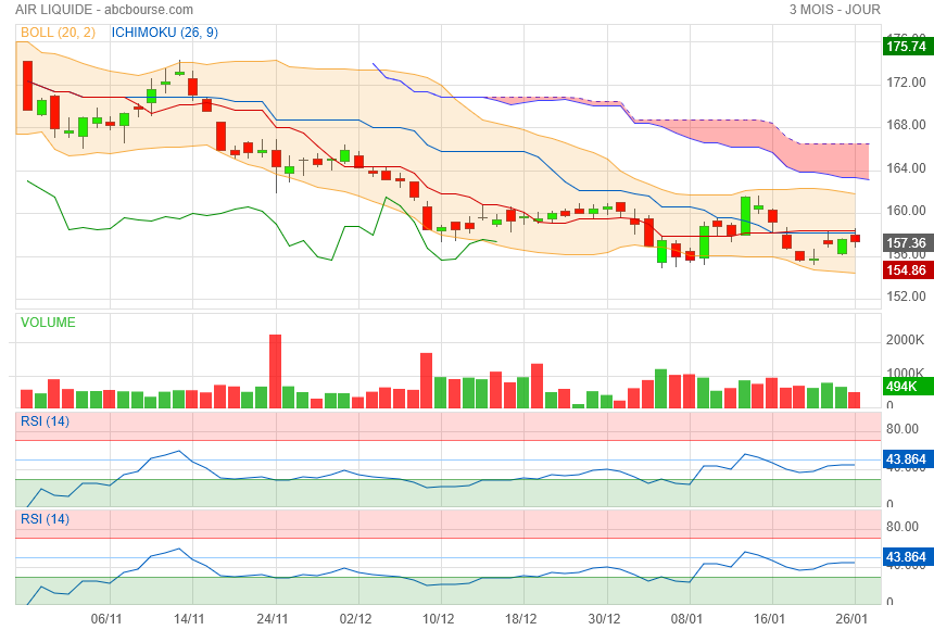 AI poursuit un range depuis le 19 janvier sous le plat Kijun Sen 158.25 € : 158.25-155.74
