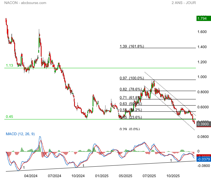 Mais où va elle s’arrêter, depuis la cassure de 0.45€ la reprise baissière nous porte vers l’abîme