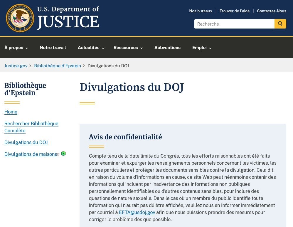 Un site officiel du gouvernement des États-Unis, dédier à l’affaire Bibliothèque d'Epstein.