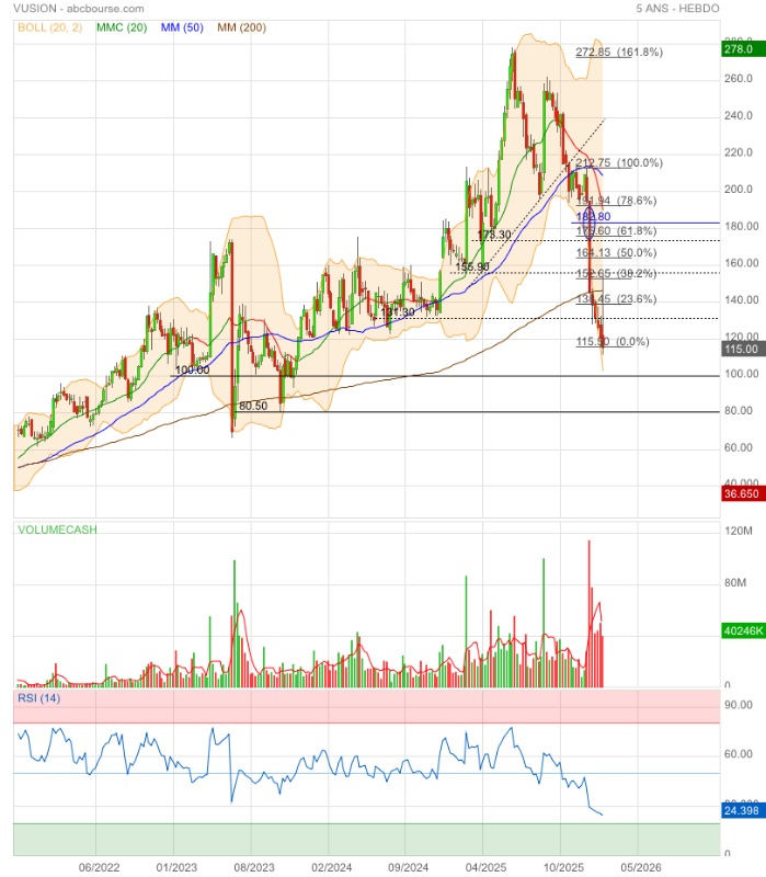 Malgré la news, ça gèle fort à -11,07% et retourne sur 116,50 €…