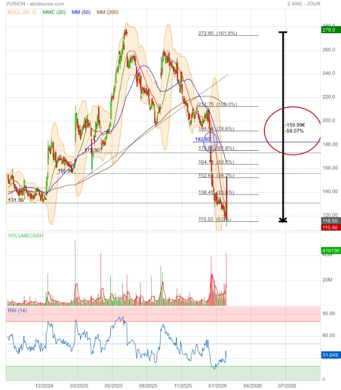 Si cassure des 108€, il faudra attendre et viser le range 96.5 /98.5 ou pire celui de 90/92.