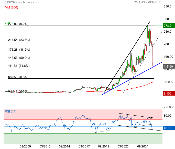 Les valeurs qui évoluent dans un biseau d’élargissement subissent tjrs bcp de volatilité, et ++ figure est exponentielle