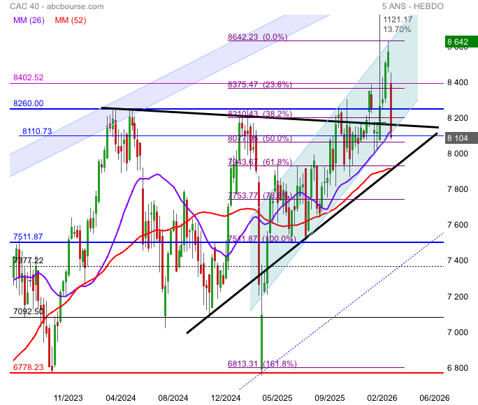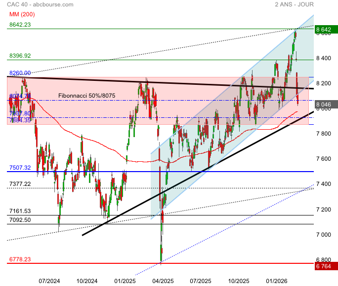 On a déjà retracer 50% 7511/8642 on est posé sur la mm26 ou 30 on a réintégrer le triangle de sommet + base tunnel haussier réaction à venir ou poursuite de la baisse