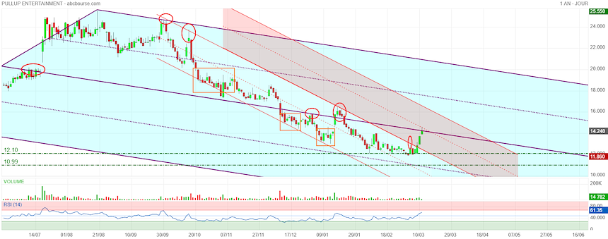 Le support horizontal des 12€ a bien tenu et à confirmer les plusieurs rebonds observés auparavant pour une nouvelle tentative e sortie du Canal Baissier.
