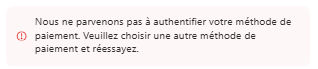 Re-tenté ce soir via votre appli Stripe, mais ça ne veut pas. Le système ne "reconnait pas mon moyen de paiement" alors que celui des Impôts français n'a aucun soucis ..pour me débiter