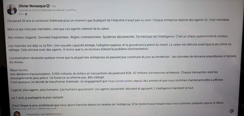 Vous voulez connaître les avancées qui seront annoncées le 7 avril et ancreront Sidetrade comme moat mondial de l'O2C?