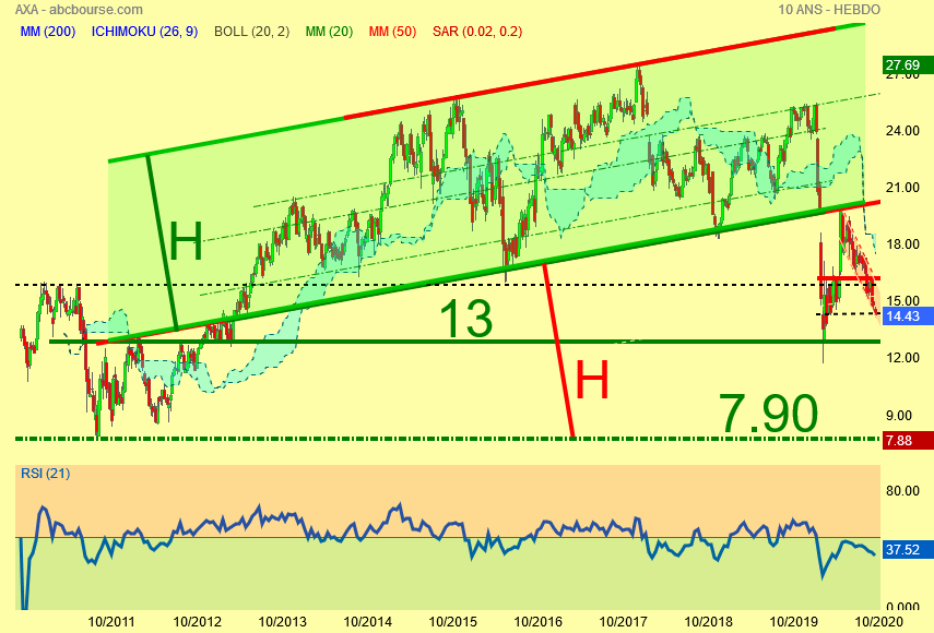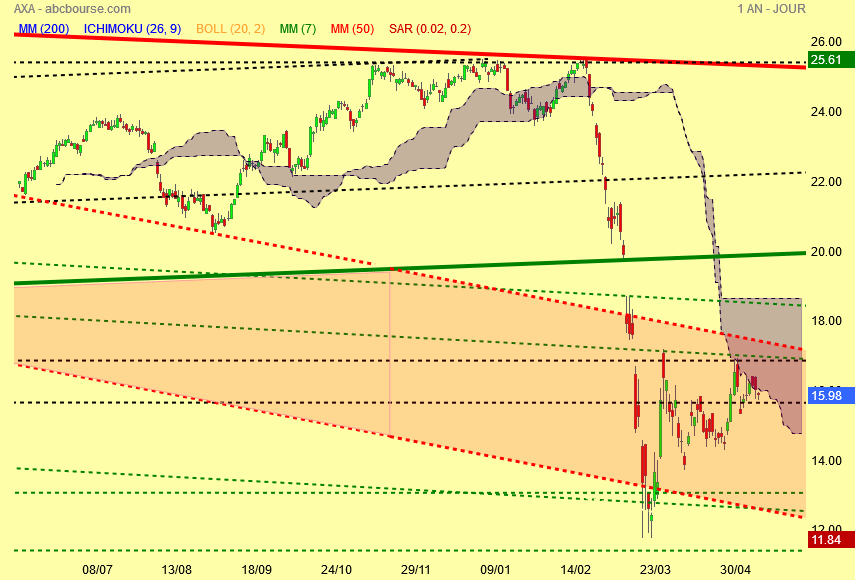 Axa négativons , çà ne badine plus inutile d' en rajouter dans le canal baissier à la sortie de cette fihure chartiste baissière .