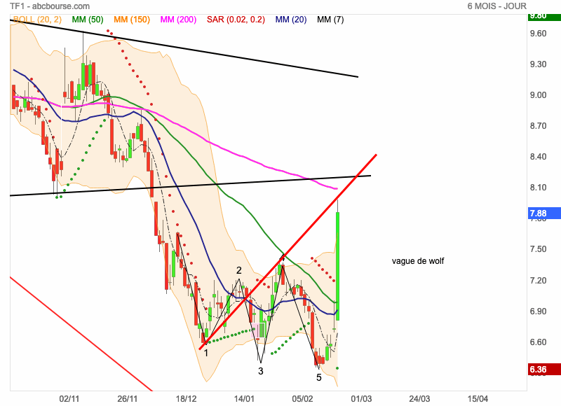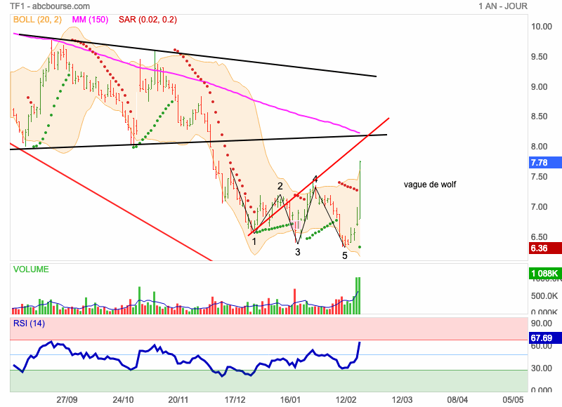 Je vous met ce petit graph qui ne tien pas compte des fondamentaux de cette société, mais juste de l'analyse psychologique