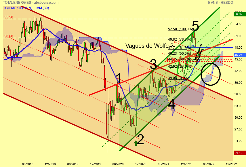 Parce que nous avons eu une première jambe de baisse ou MAT depuis 52.50 jusqu' à 43.59 et que fait le cours ?