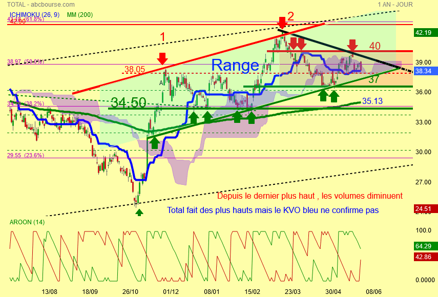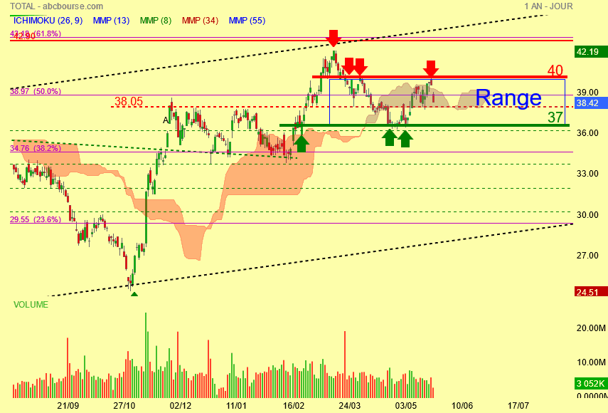 En fait le cours de Total est en Range que j' ai intitulé HR ou Hauteur de Range celui çi ferait 2 euros soit HR = 2