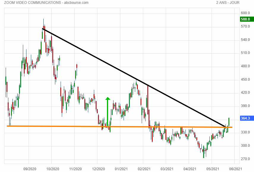 le triangle est formé par la ligne verte et la ligne rouge qui était passé en sentiment haussier