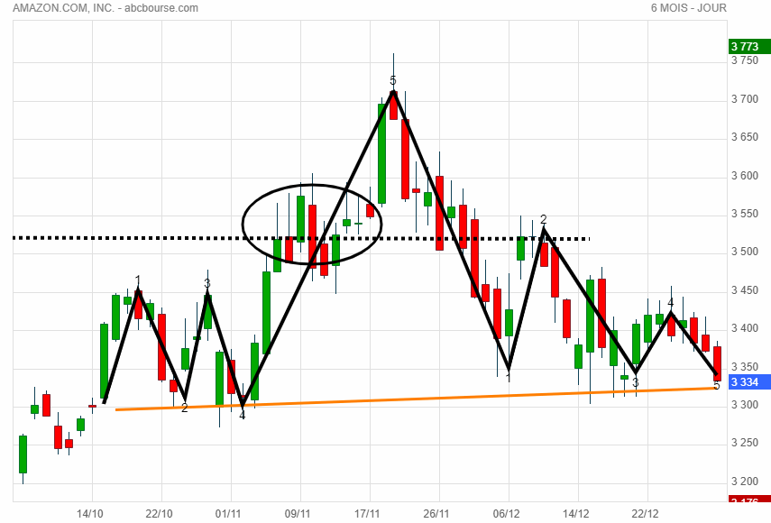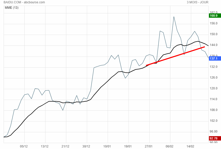 le titre passe < le mme 13 en formant une configuration e-T-e baissier