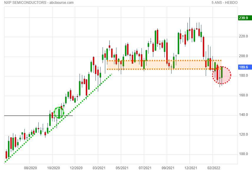 l'ellipse rouge éclaire l'article : le cours est < le zone orange : une situation ne pas haussiere.