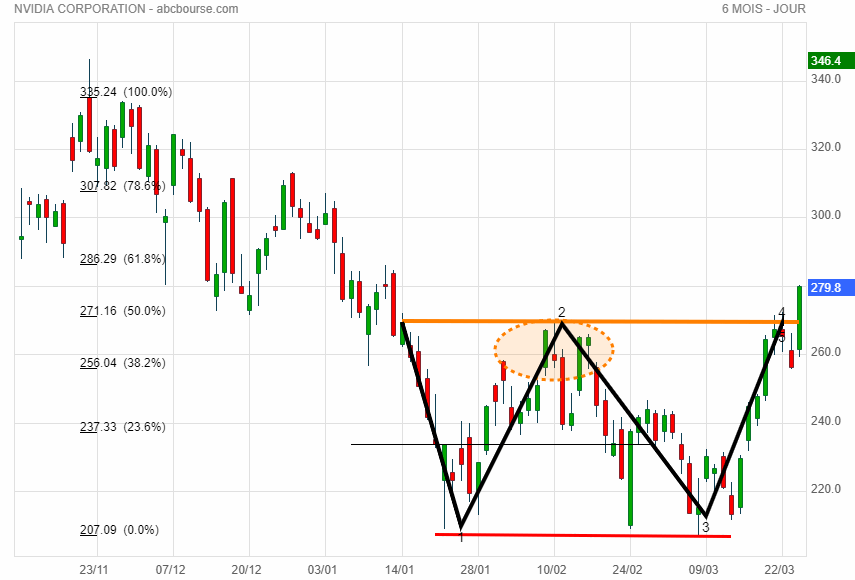 les lignes noirs indiquent un possible W , le passage de 270 en sentiment haussier semble
