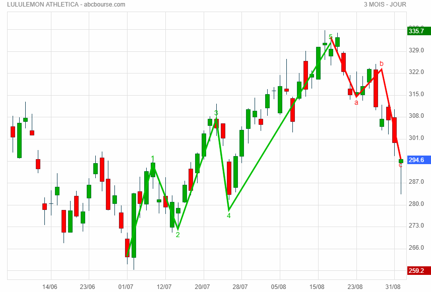 les lignes vertes indiquent l 'impuls 266-295-273-308-285-335