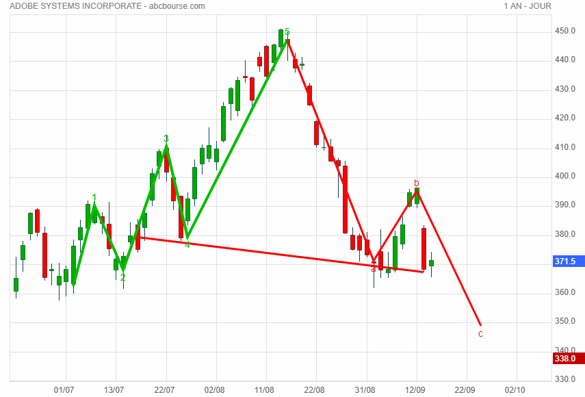 en ouverture < 370 le ligne rouge peut se prolonger d'une maniere baissiere avec un but de 350