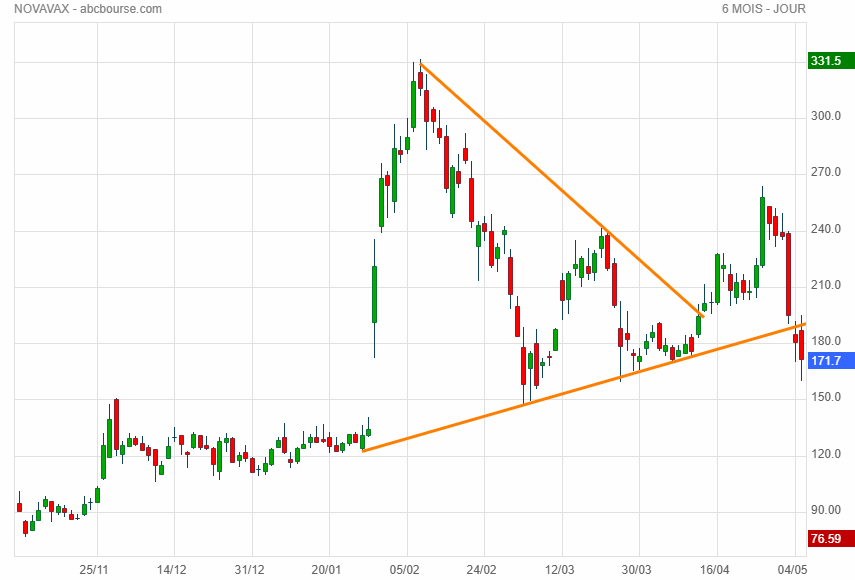 NVAX (us) a fait un swing haussier , disons de 210 -> 265 , mais a cassé