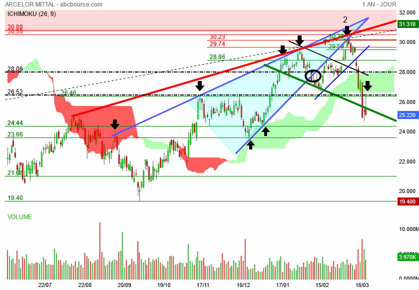 Le graphe mois permet d'envisager un bas à 24.35 voir plus si le marché général continue de dévisser.