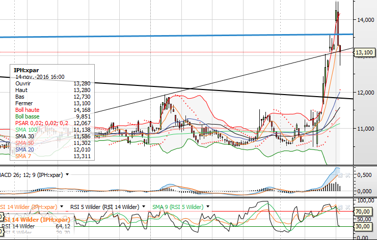 en journalier on est qd meme en dessous de la M7 baissière. SAR à 13.29 M20 à 12.80