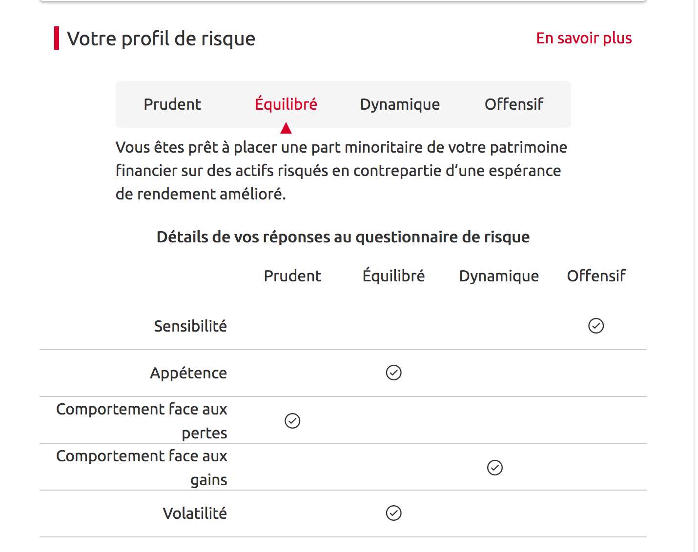 "Equilibré" traduit votre appétence et votre exposition au risque.