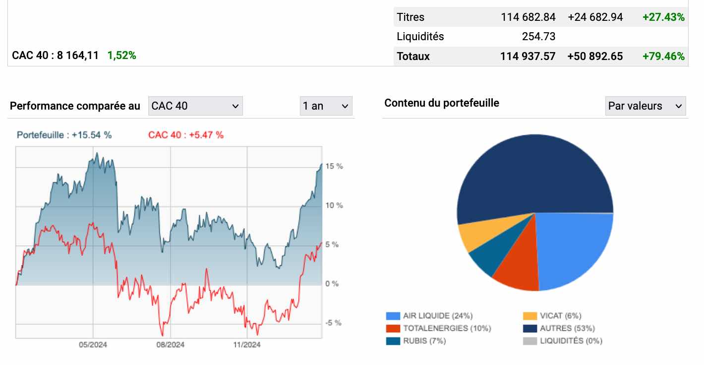 • Plus-value réalisable par titre au 31 décembre 2024 (en €) : +19,28€ (Soit + 158,89%)