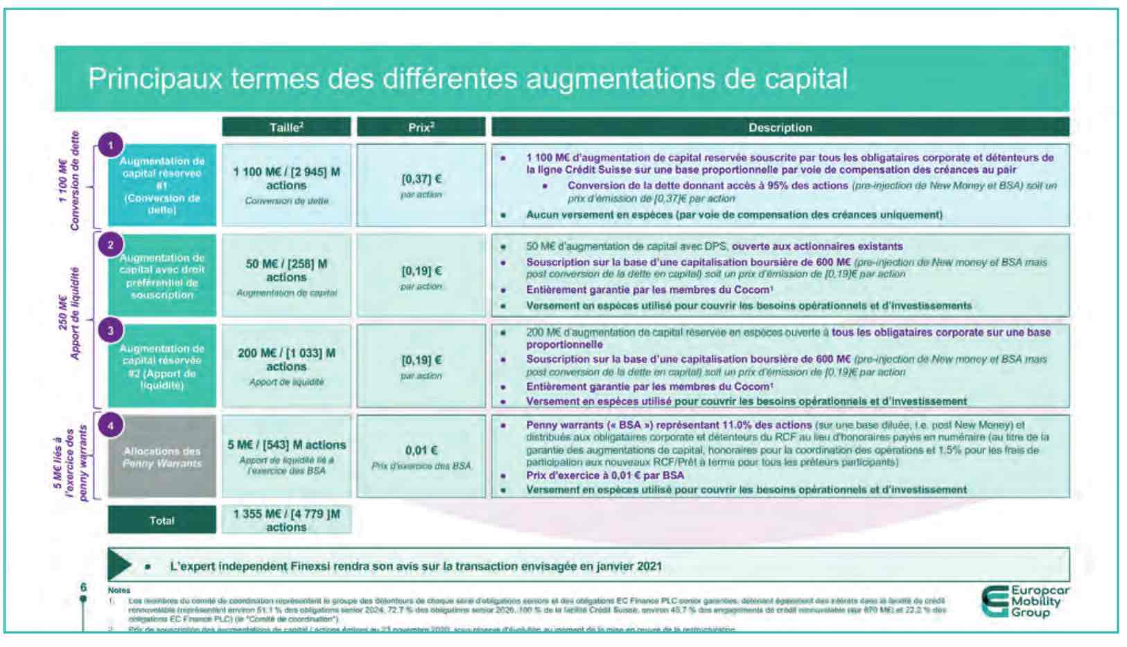 Présentation de la restructuration financière 2020