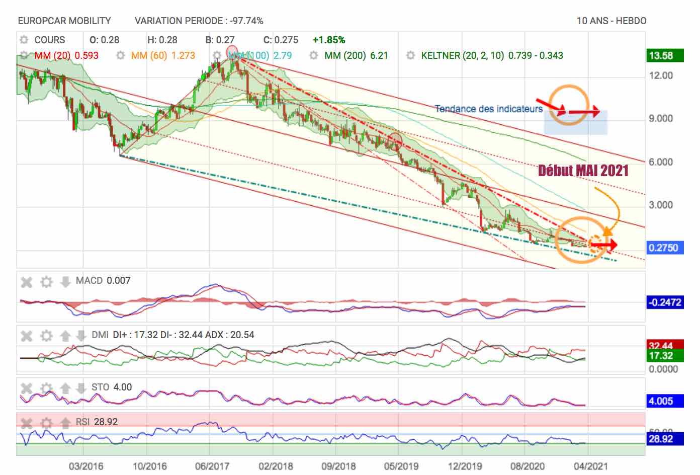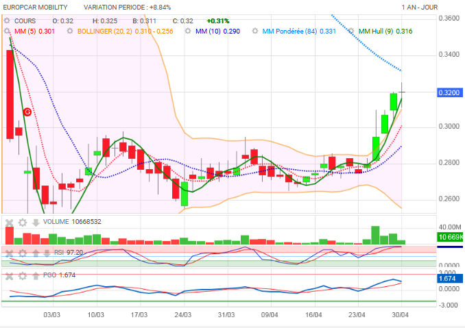 Moi, j'y vois une tendance nette à la hausse sur le 10 jours, imperceptible sur 3 mois... Avant je m'en tape , c'est le passé; l'action était hors des clous et ça mettra du temps pour revenir dans ces eaux-là. Ce qui m'intéresse, c'est maintenant pour demain.