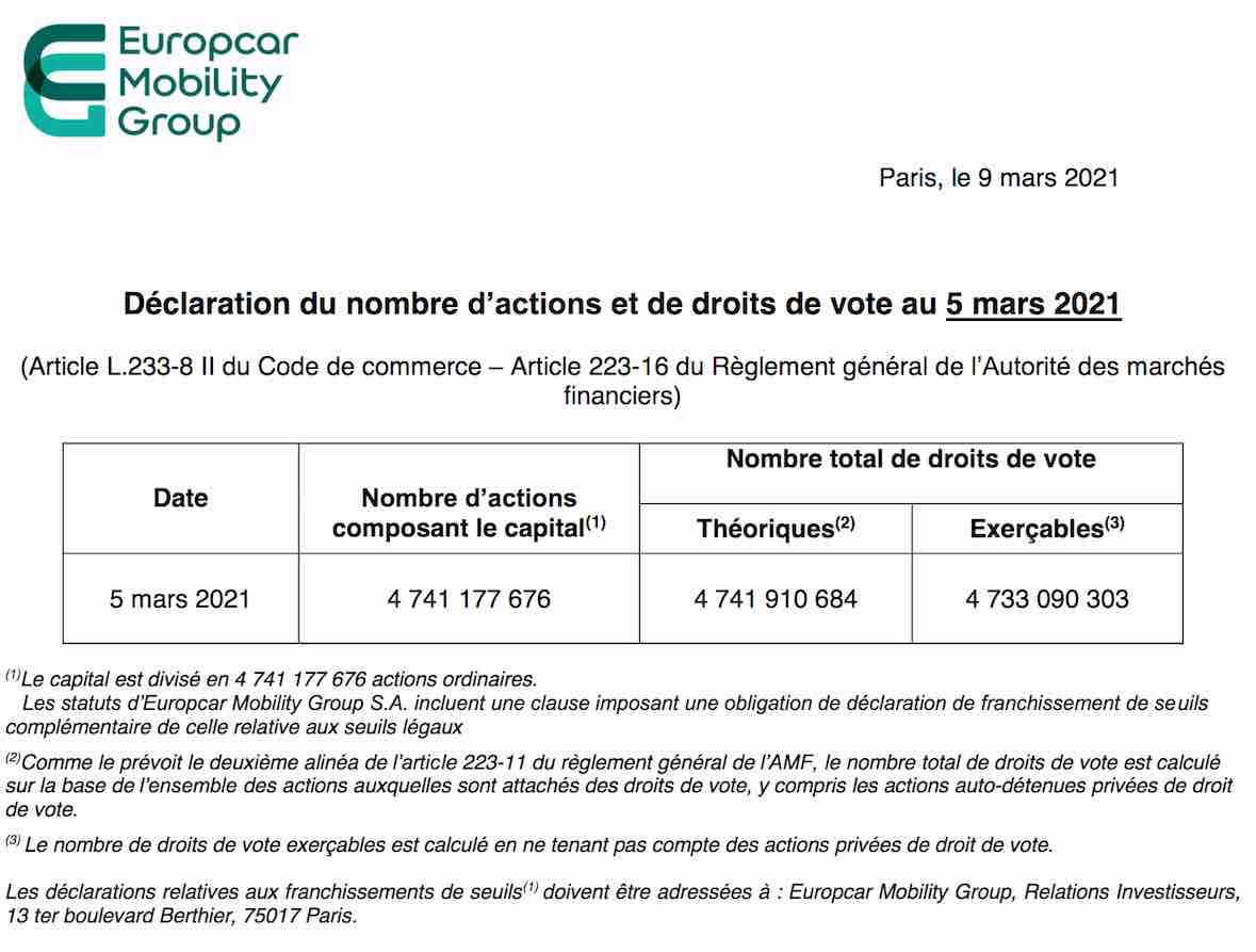 Le nouveau capital est d'actuellement 4 463 919 674 titres.