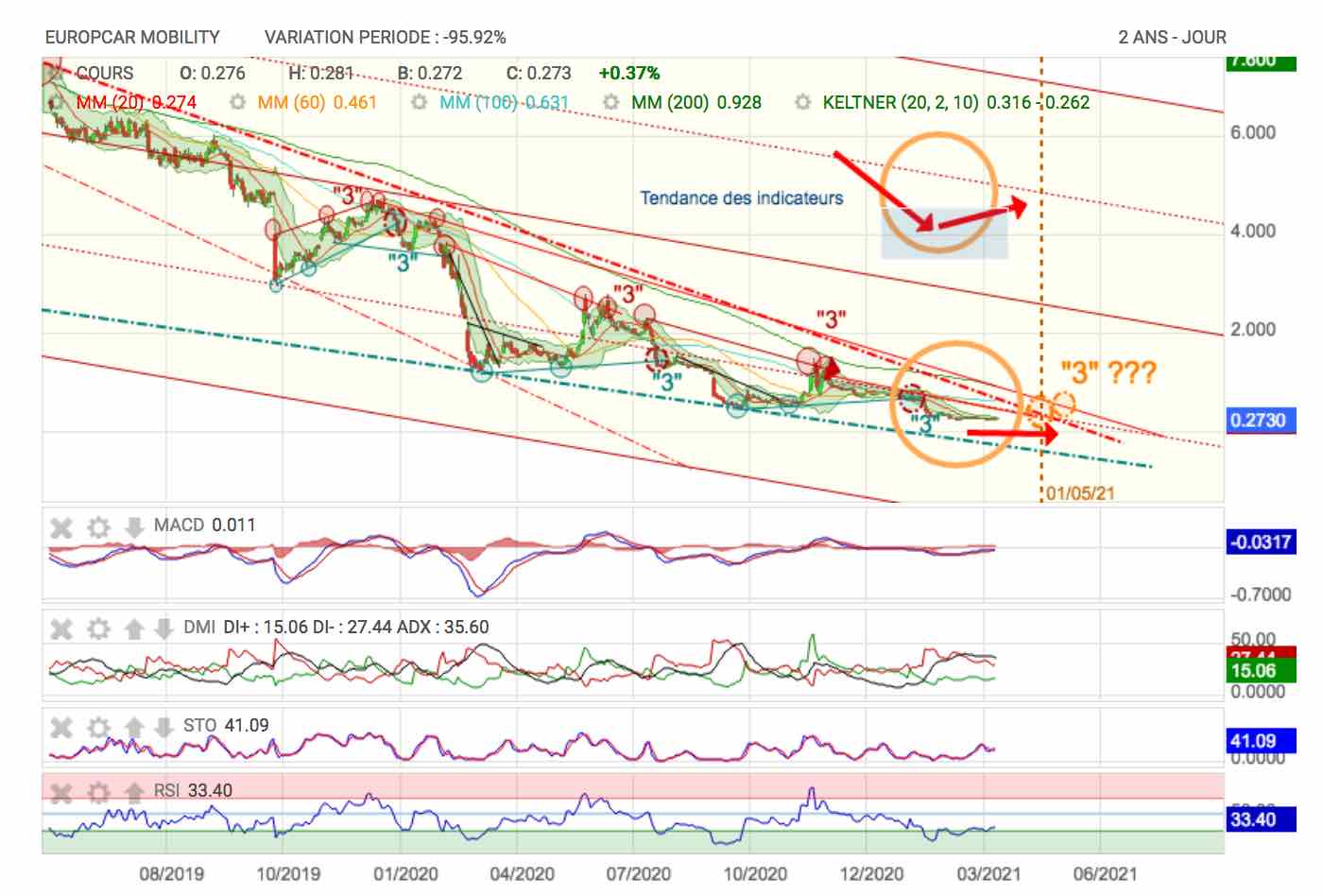 Le passage du triple top signifiera la fin du mouvement baissier en oblique, mais le chemin restera très long pour sortir de cette fourchette baissière dans laquelle Eurazéo a lamentablement embourbé le titre dans sa course sans demi mesure à une taille critique pour dominer le marché.
