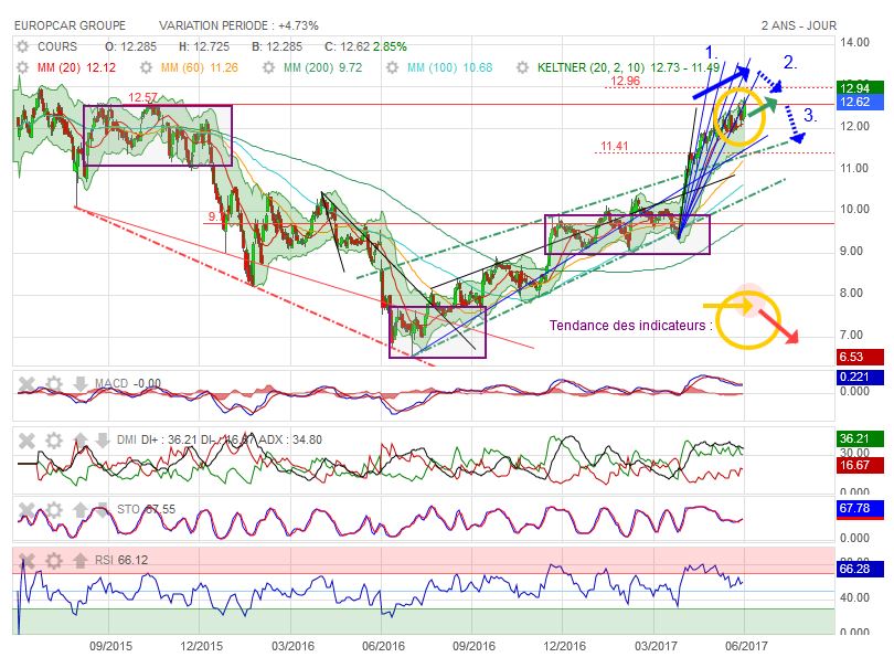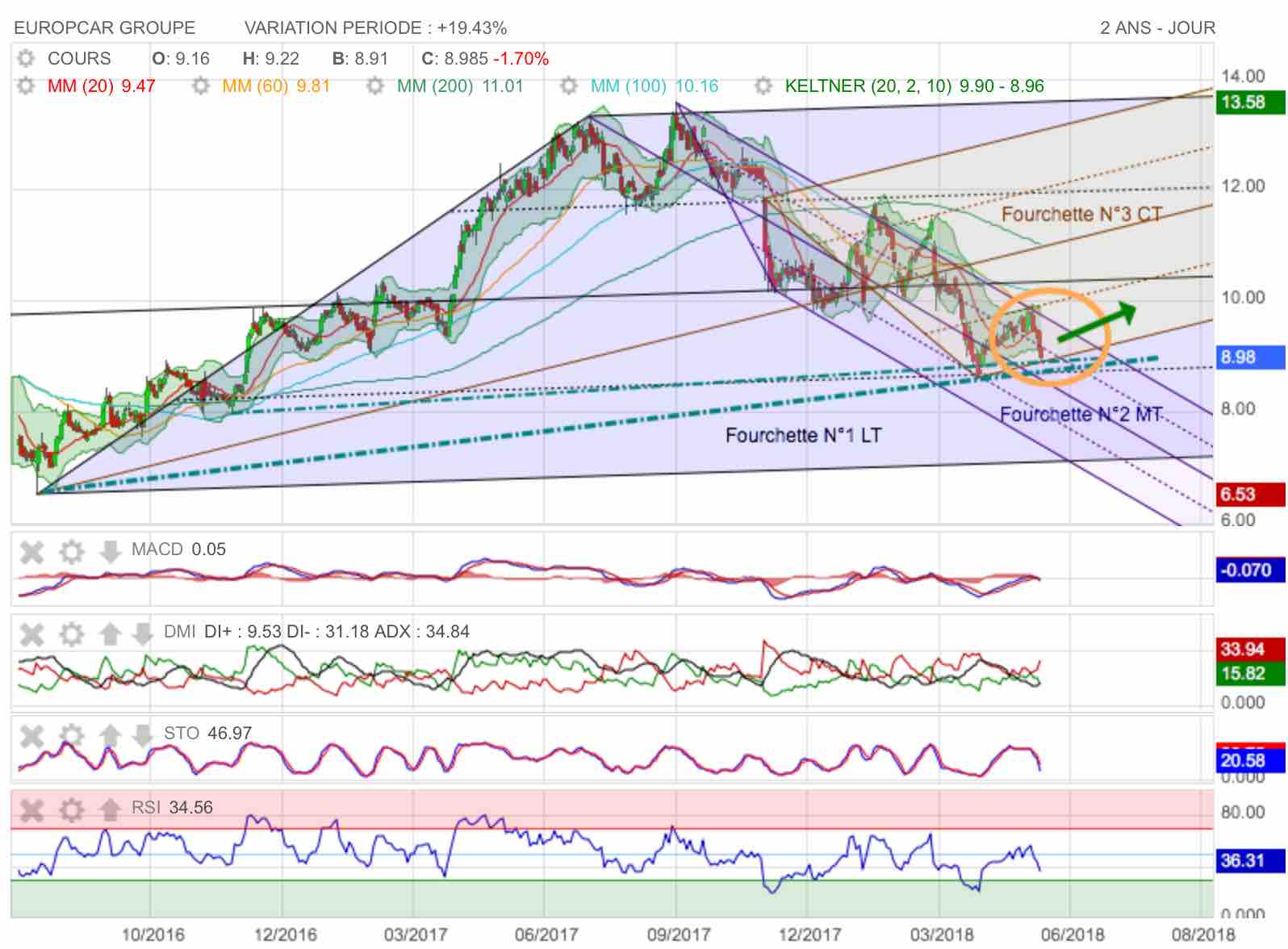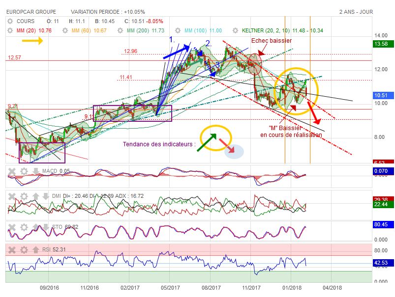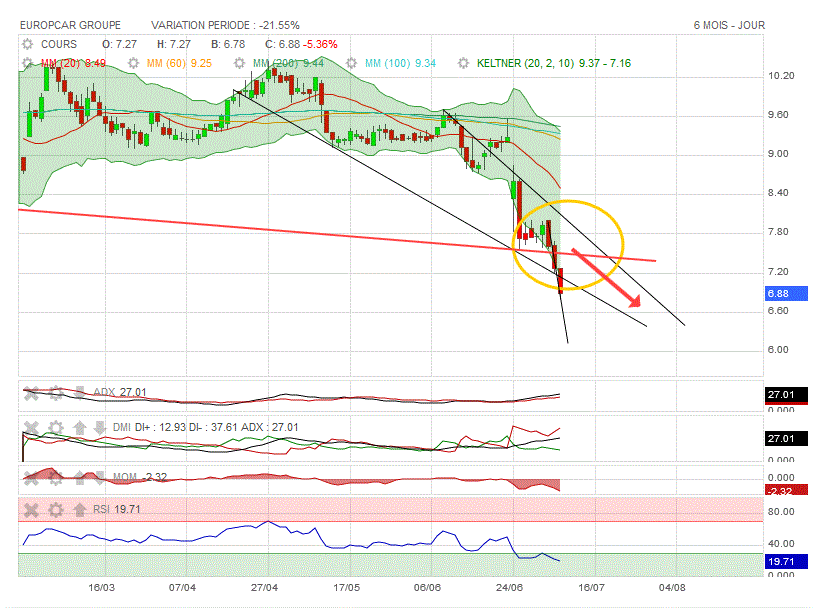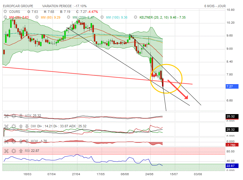 Et donc pour l'heure, on tente de trouver des supports à la baisse. à signaler que l'on attend toujours les suites de l'enquête concernant l'entente sur les prix des locations de voiture : ce qui pourrait produire un nouveau domino baissier en terme de risque financier alors que les charges demeurent importantes.